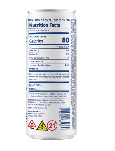 Carbonated water, Sugar, Erythritol, Citric acid, Hemp emulsion, Natural flavors, monk fruit extract