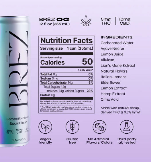 FDA DISCLAIMER: Our products are not for use by or sale to persons under the age of 21. All products contain less than 0.3% THC per the Controlled Substances Act. Consult your physician before use if you are pregnant, nursing, have allergies, or are taking any medication. BRĒZ is a non-alcoholic beverage. However, we use craft-extracted flavors from Italian lemons and Elderflower, which means there is a trace amount of ethanol in BRĒZ—less than a bottle of commercial kombucha. (<0.5% ABV). These products have not been evaluated by the FDA for safety or efficacy. This product is not intended to diagnose, treat, cure or prevent any disease.