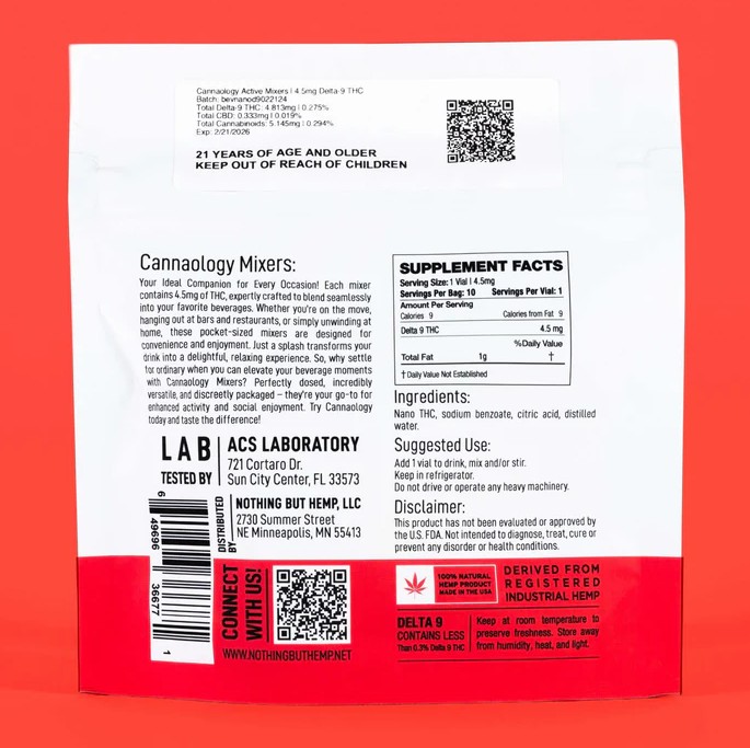 Each enhancer is precisely dosed with 4.5mg of high-quality THC, ensuring a consistent and controlled experience every time. Perfect for both THC enthusiasts and those seeking a sessionable option, our enhancers promise a smooth, enjoyable, and flavor-enhancing journey. Dive into the world of Cannaology and transform your beverages into something extraordinary, with the added benefit of our specially selected active terpenes.