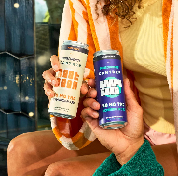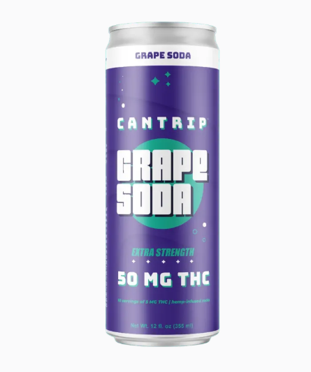 Cantrip Grape Soda contains carbonated water, cane sugar, natural grape flavor, citric acid, hemp extract, sodium benzoate, and potassium sorbate.