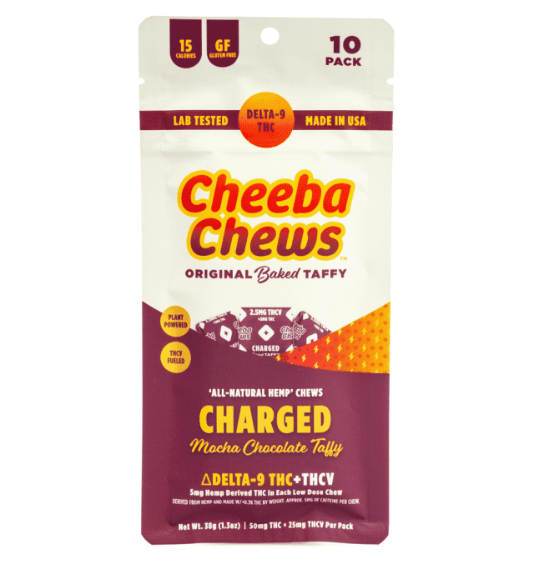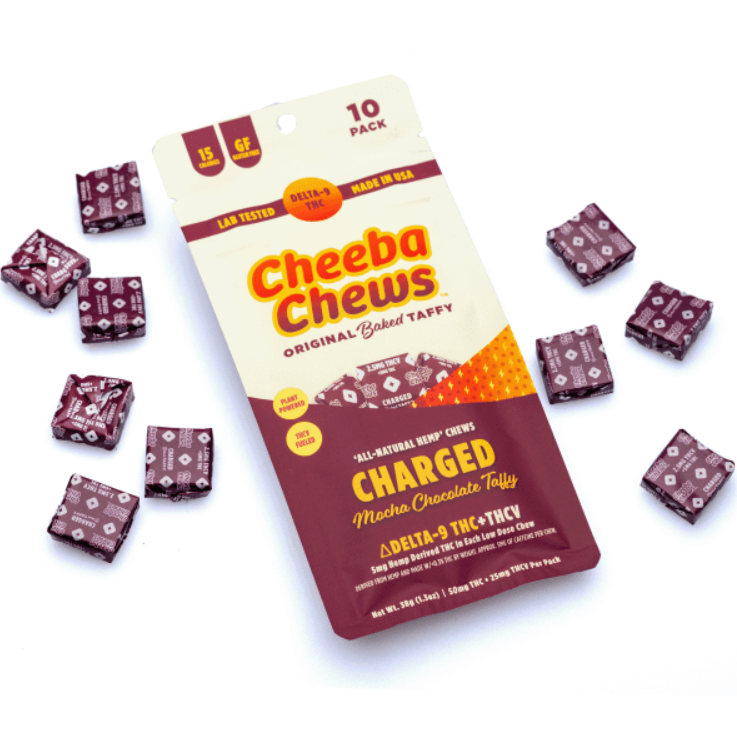 Cheeba Chews Charged Chews are designed to provide a powerful boost of energy and mental clarity. Featuring a precise blend of Delta-9 THC, THCV, and caffeine, these chews offer a unique experience that invigorates the body and sharpens focus. Some potential benefits include: