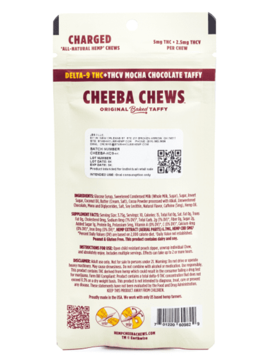 Cheeba Chews are crafted using premium ingredients, ensuring a smooth mocha flavor that satisfies with every bite. Convenient and discreet, they’re the perfect addition to any on-the-go routine. Experience the synergy of cannabinoids and caffeine with Cheeba Chews Delta-9 and THCV Charged Chews – a delicious way to power through your day.