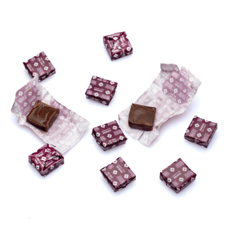 Cheeba Chews Delta-9 and THCV Mocha Chocolate Taffy – Charged delivers a bold mocha chocolate taffy experience crafted to energize both body and mind. Each chew is infused with 5 milligrams of Delta-9 THC, 2.5 milligrams of THCV, and a touch of caffeine for a balanced burst of energy and focus. With 20 chews per pack, they provide a total of 50 milligrams of THC and 25 milligrams of THCV, offering a reliable and uplifting experience.