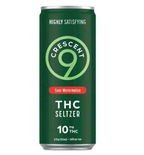 Crescent 9 Sour Watermelon THC Seltzer contains 10mg of THC per can. Effects are felt in about 15 minutes. Serve chilled. Do not freeze.