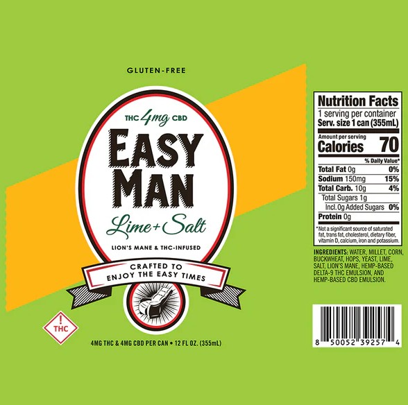 Ingredients: Water, millet, buckwheat, oats, lime, lion’s mane, hops, yeast, hemp-based Delta-9 THC emulsion, hemp-based CBD emulsion.
