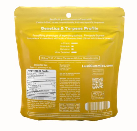 This 30-count bottle of our Piña Colada Kush Gummies contains 5mg of Delta-9 THC and 5mg of Terpenes and Minor Cannabinoids per sativa gummy.
